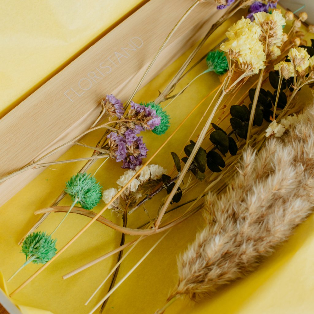 Sušené květiny jsou přírodní nebo ve stabilizované formě. Jelikož se snažíme o sezónnost, může nastat malá odchylka ve výběru květin právě do vašeho stojanu, ale nikdy ne na úkor kvality.