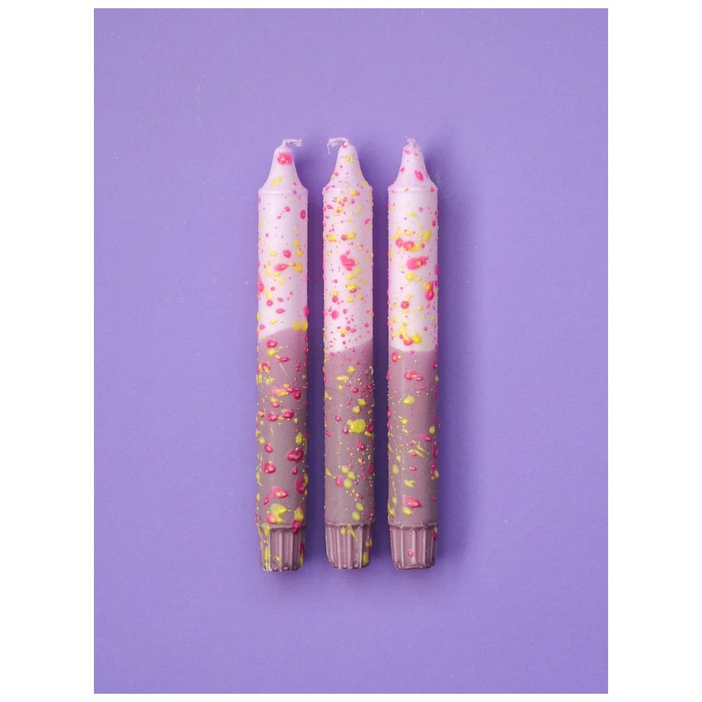 Sada 3 ručně vyrobených svíček v jedinečných barvách, máčených a zdobených voskem na svíčky.